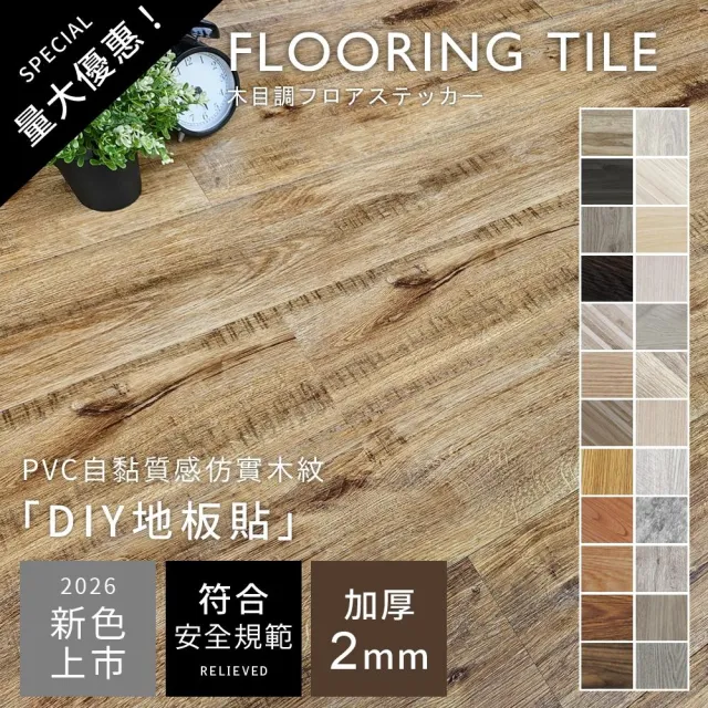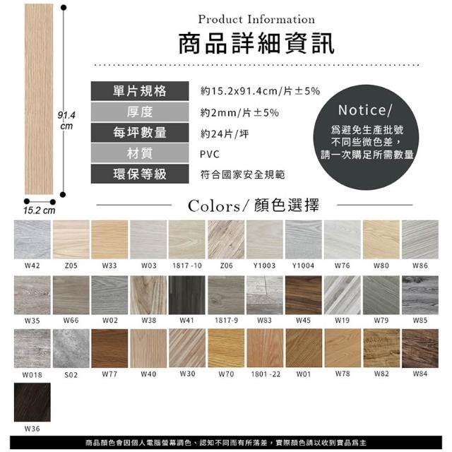 Akira耐磨防水 72片/3坪 DIY足厚2mm木紋地板貼 可裁切 自黏式地板 免膠 SGS通過 不含底料 PVC地板貼