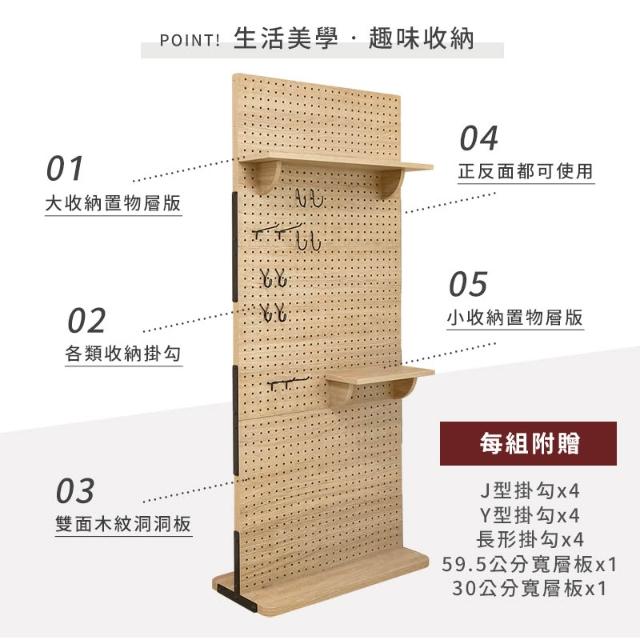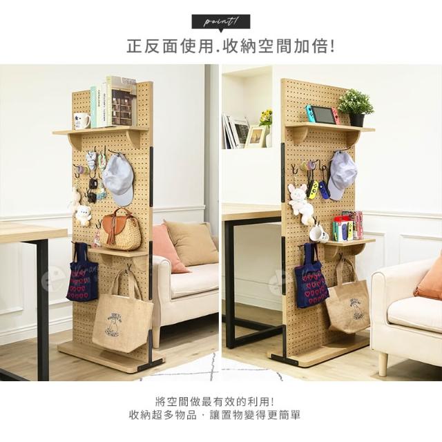 AkiraMIT落地式板厚2.8cm雙面收納洞洞板(架子 收納架 屏風 隔間 層板 掛勾 玄關 置物架)