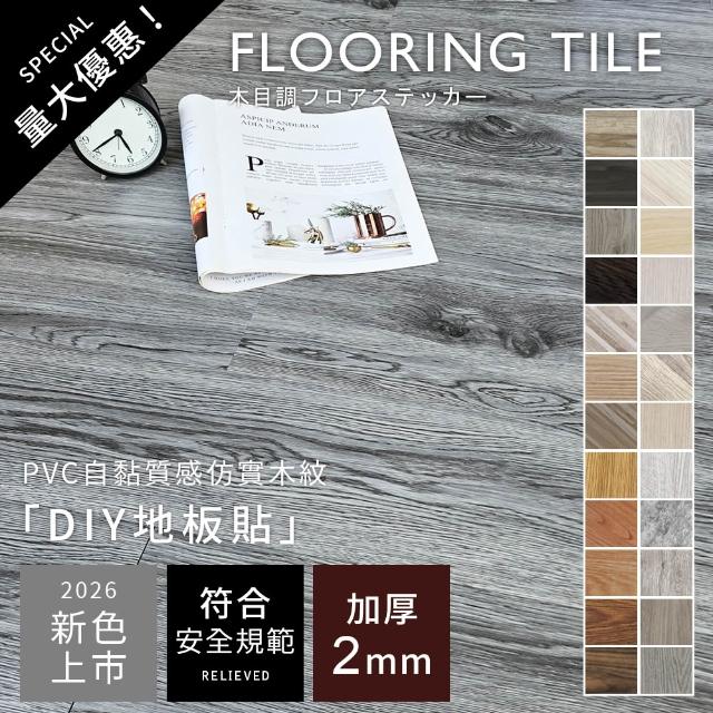 Akira耐磨防水 108片/4.5坪 DIY足厚2mm木紋地板貼 可裁切 自黏式地板 免膠 SGS通過 不含底料 PVC地板貼