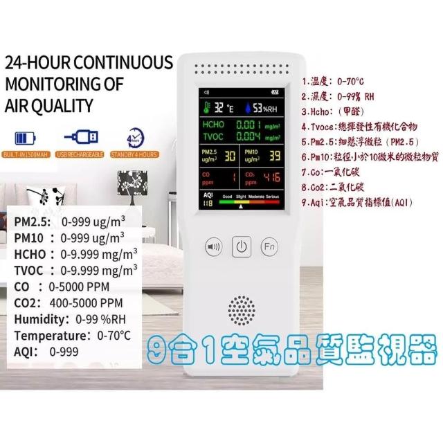 CC優舖✨9合1空氣檢測儀✨PM2.5甲醛TVOC CO2 AQI 二手菸溫濕度PM10多功能 空氣品質監測器