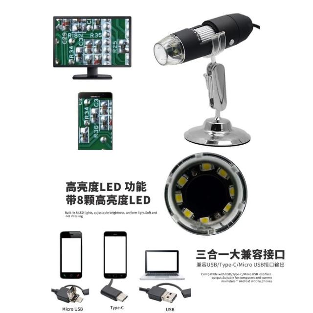 ✨1000倍手機顯微鏡✨(專業級 連續變焦usb顯微鏡 高清顯微鏡鏡頭 電子放大鏡 工業 美甲 檢測 維修 手機顯微鏡)