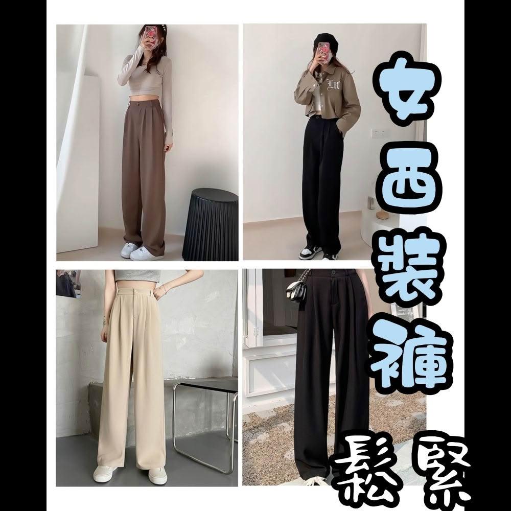 💕女薄款 西裝褲💕夏季長褲 鬆緊褲 休閒褲 夏季長褲 闊腿褲 高腰 寬鬆 長褲