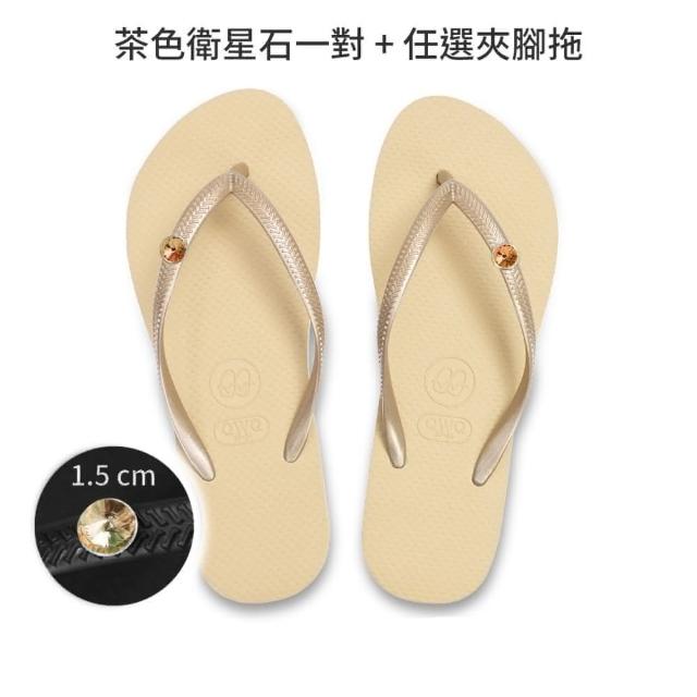 QWQ施華洛世奇水鑽 茶色 衛星石 大鑽 鞋扣 夾腳拖鞋女 夾腳拖 拖鞋女外出 人字拖 女拖鞋 夾腳涼鞋 拖鞋 涼鞋女 水鑽拖鞋