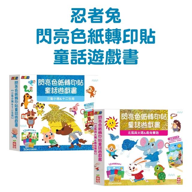 幼福[幾米兒童圖書] 忍者兔閃亮色紙轉印貼童話遊戲書:北風與太陽&龜兔賽跑/ 三隻小豬&十二生肖 幼福