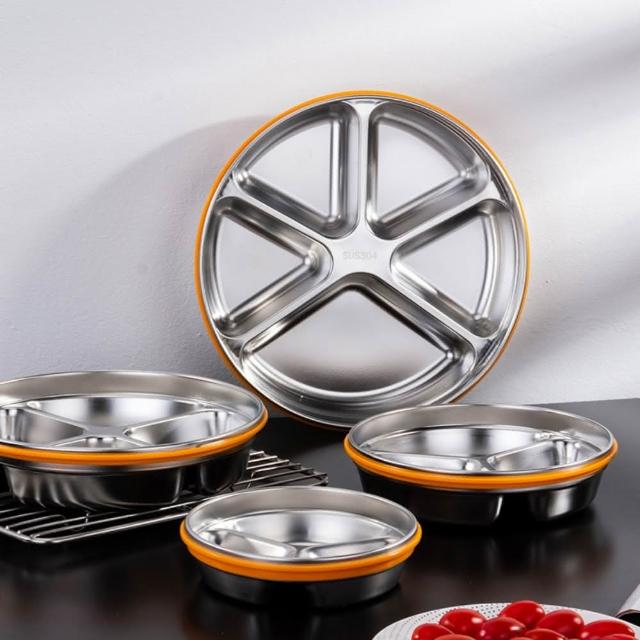 易家居304不鏽鋼加深分格餐盤四格款(304不鏽鋼 四格 附蓋子 分格 分隔 餐盤 分格餐盤)