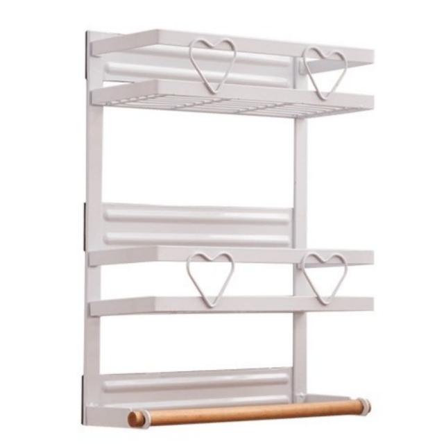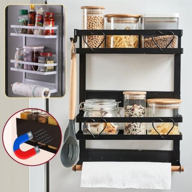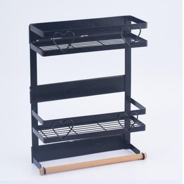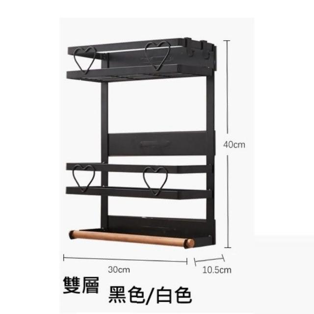 易家居 鐵藝磁吸式冰箱側邊雙層置物架(雙層 置物架 側掛 紙巾收納架 磁鐵側邊收纳 收納架)