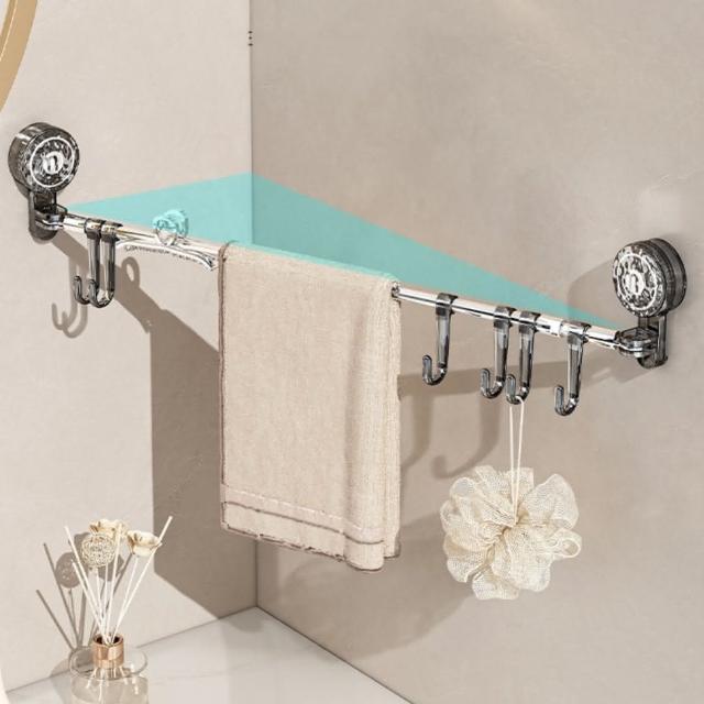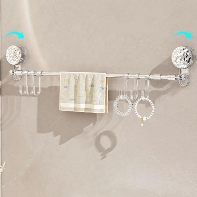 易家居 免打孔吸盤伸縮毛巾桿(大號約可伸縮60~120cm) 毛巾架 伸縮架 免打孔 一轉就吸上 旋轉式安裝超方便 可伸縮