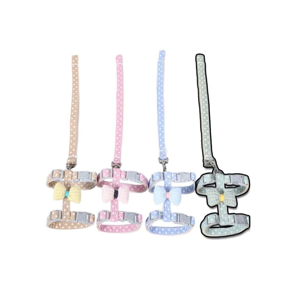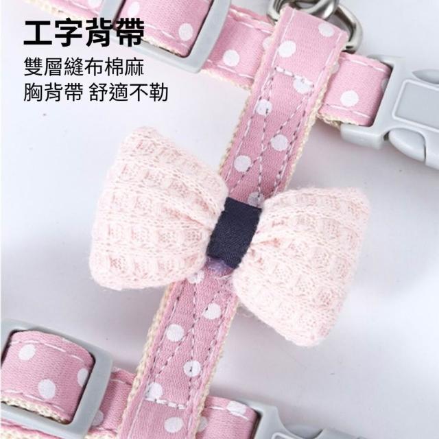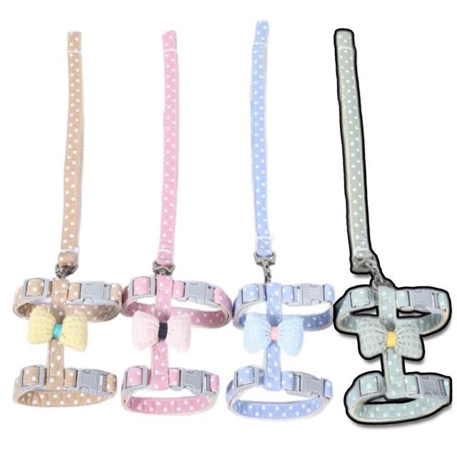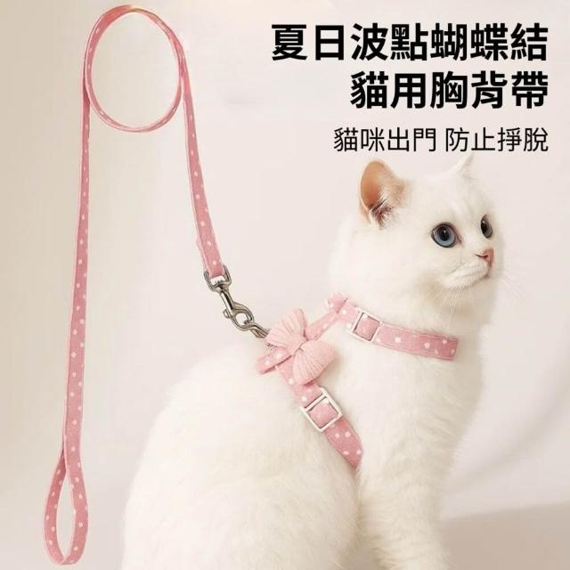 WWC夏日波點蝴蝶結貓用胸背帶 寵物牽繩 寵物胸背帶 貓用牽引繩套裝 遛貓繩 貓咪牽繩 毛掌櫃寵物