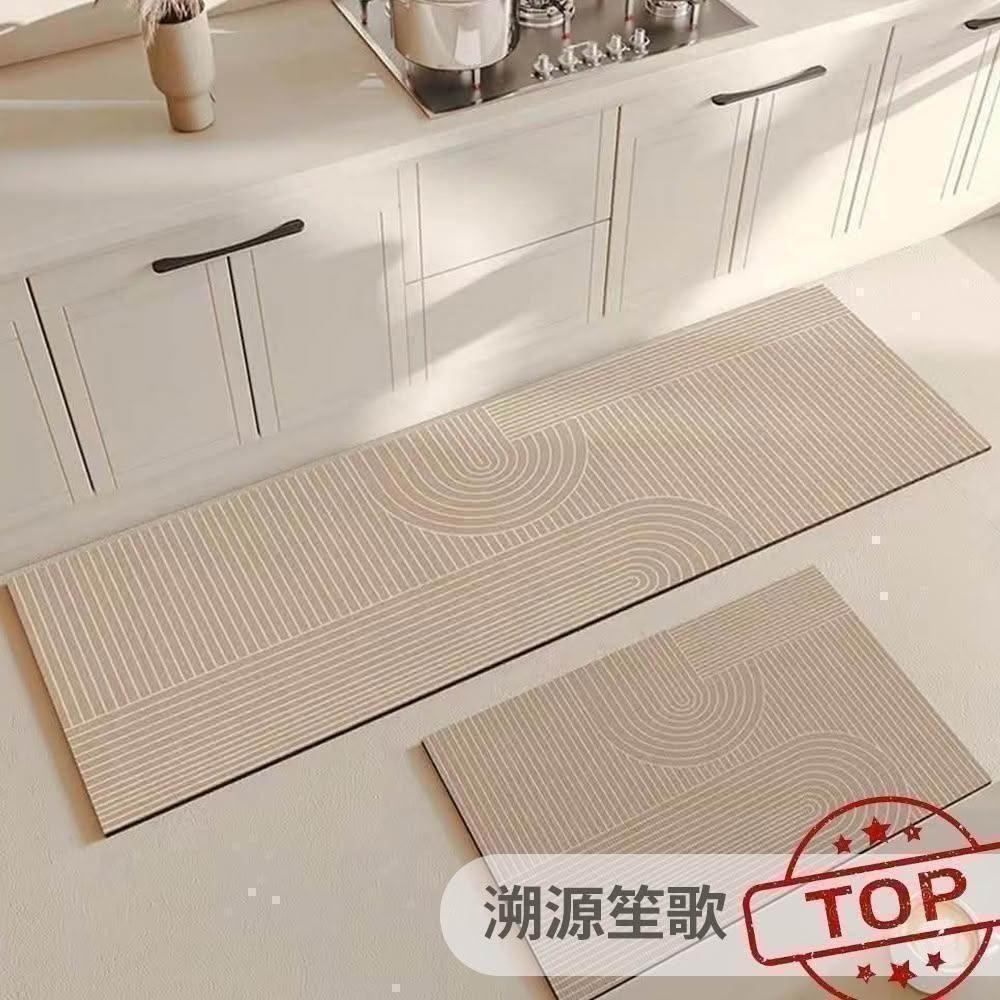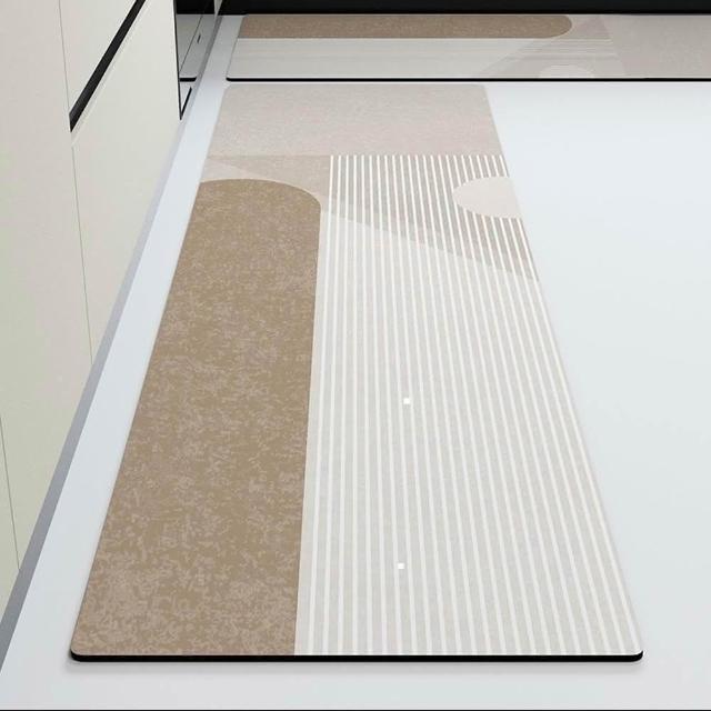 富居閣日式線條 45×150cm廚房珪藻土地墊 侘寂風 防水防油 ( 矽藻土軟地墊 防滑地墊 吸水地墊 入厝 入厝禮)