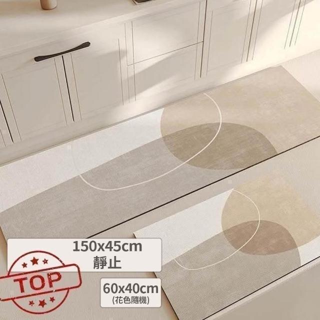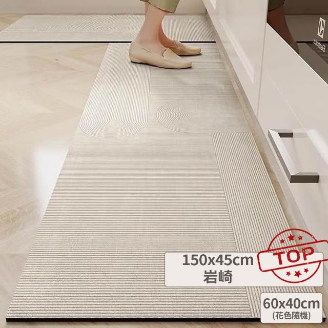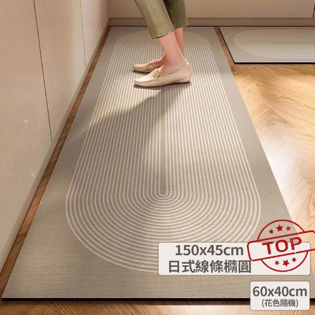 富居閣日式線條廚房珪藻土地墊150×45cm +(隨機花色)侘寂風 防水防油防滑 ( 矽藻土軟地墊 入厝 入厝禮)
