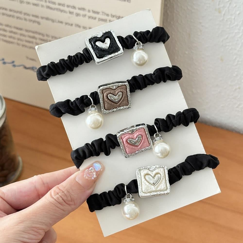 愛心珍珠髮圈不咬髮 水鑽髮圈 可愛髮圈 小腸圈 大腸圈 大腸髮圈 髮飾 髮繩 頭繩 髮束 綁頭髮橡皮筋