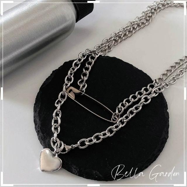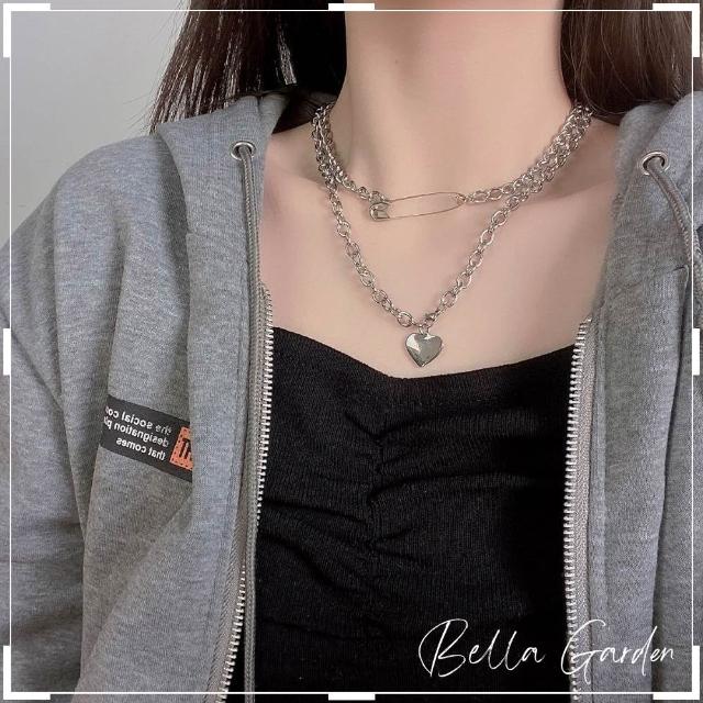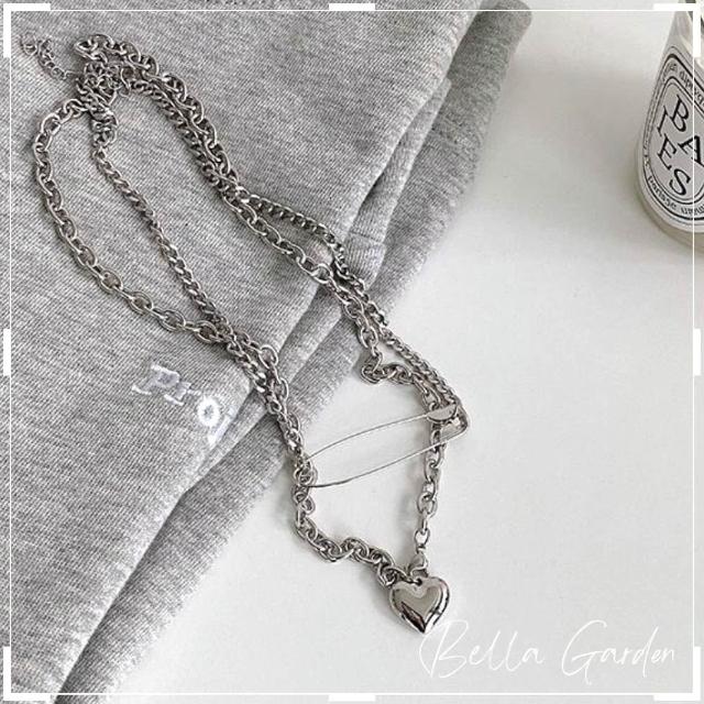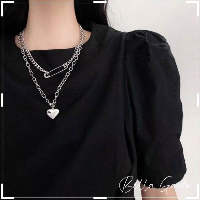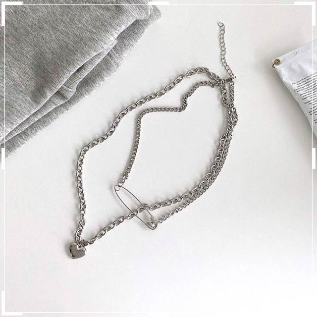 Y2K 甜酷風 雙層疊搭感 迴紋針愛心雙層項鍊 小眾設計感 個性鎖骨鍊 項鍊 銀色項鍊 愛心項鍊 飾品 女生項鍊