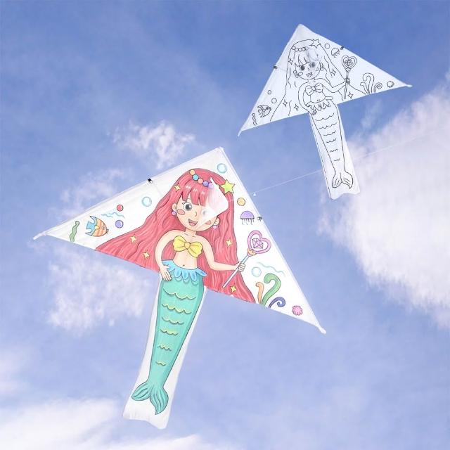 888便利購填色三角彩繪風箏(彩虹尾巴)(多款圖案)(附30公尺手板線)(6入裝)