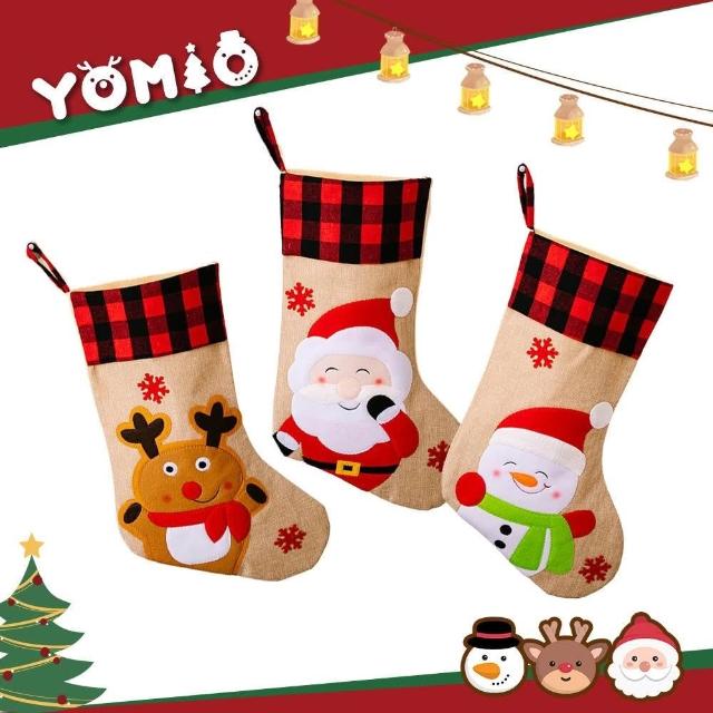 888便利購45公分聖誕紅格子亞麻拼布可愛聖誕襪(飯店賣場家裡佈置)