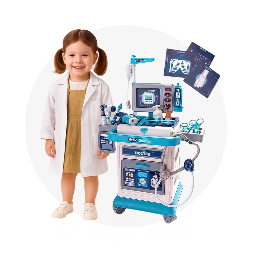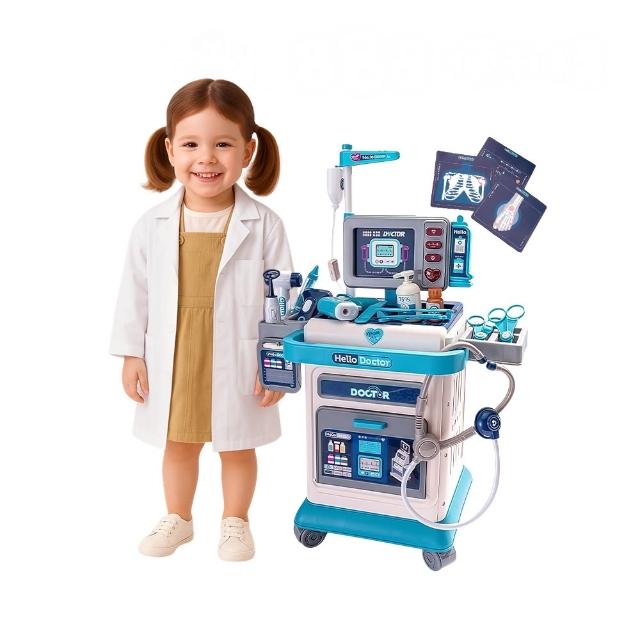 888便利購8205仿真醫療護理工作台手推車醫生組家家酒(耳溫槍+點滴架+X光片+角色扮演+音效)