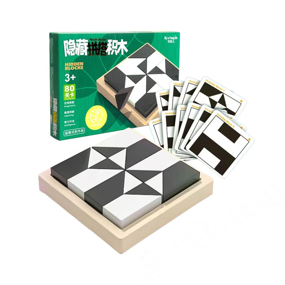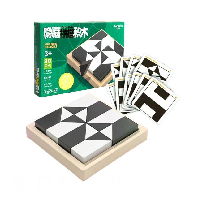 888便利購隱藏黑白積木拼盤(附80關圖卡/益智幾何圖形推理)(556163)