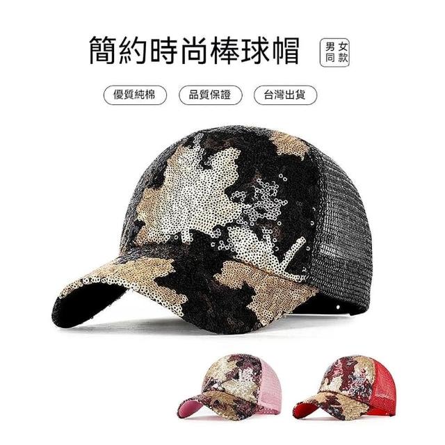 亮片棒球帽 鴨舌帽 防曬遮陽帽 情侶帽 透氣網帽(網帽 情侶帽 棒球帽 遮陽帽 帽子)