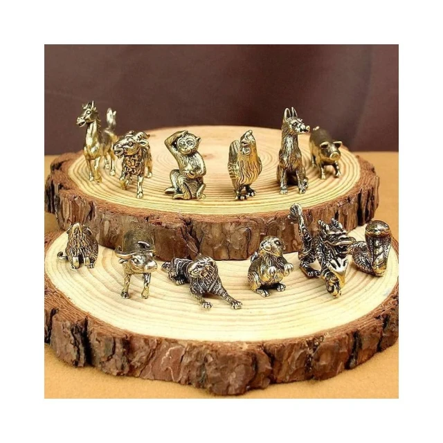 黃銅十二生肖 擺件全套 純銅生肖 鼠牛虎兔龍蛇馬羊猴雞狗豬 復古中式工藝品 裝飾擺件 台灣出貨 附發票