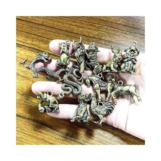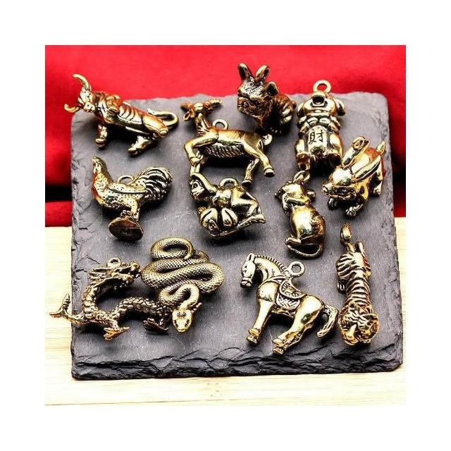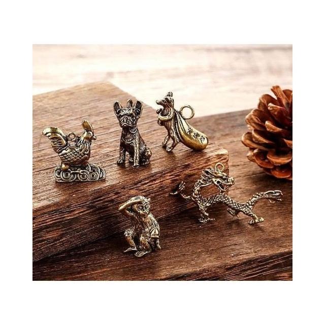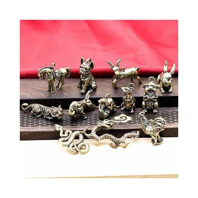 立體十二生肖 中國風掛件 純黃銅鑰匙扣 吊墜案頭 迷你小擺件掛飾 鼠牛虎兔龍蛇馬羊猴雞狗豬 台灣出貨 附發票