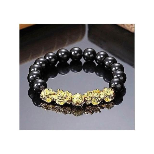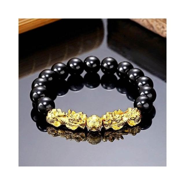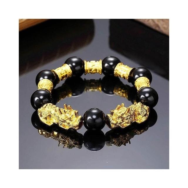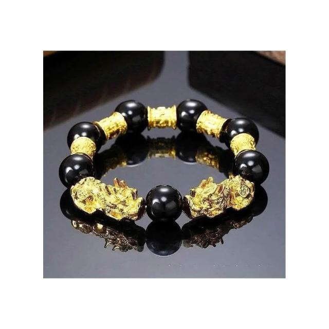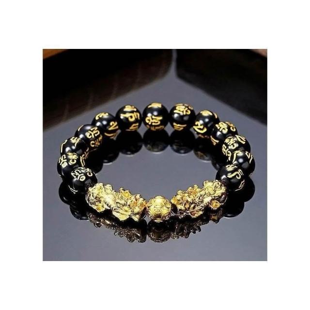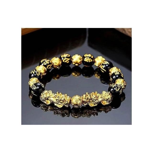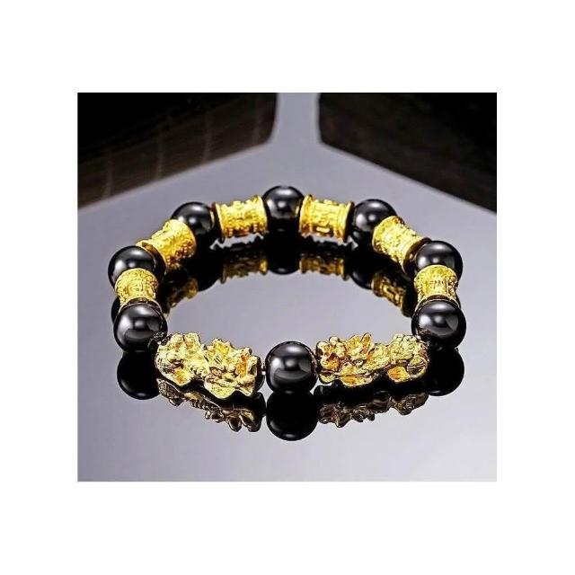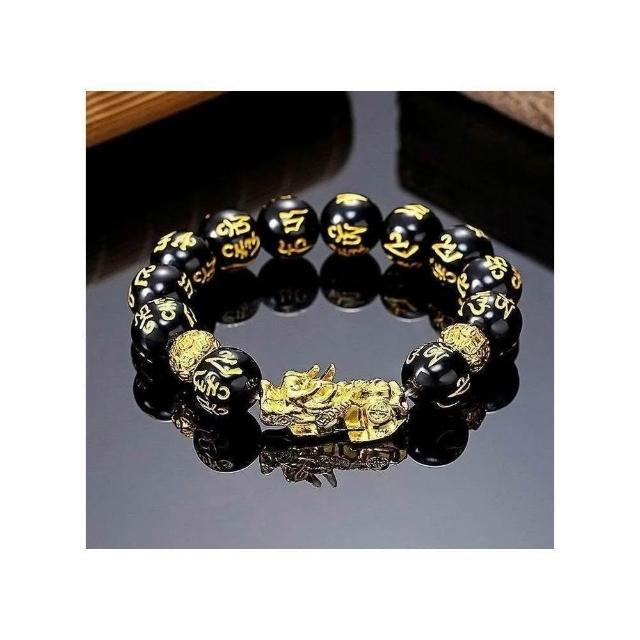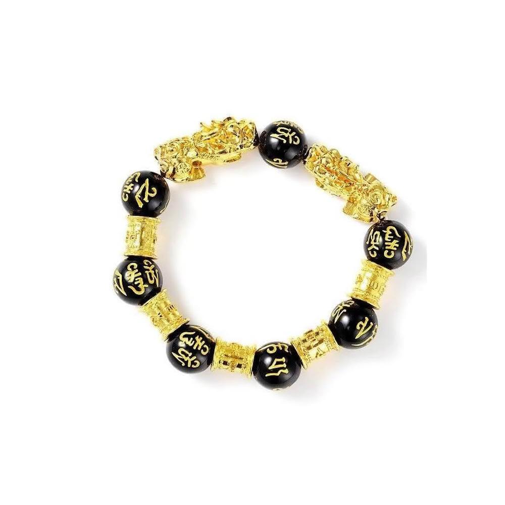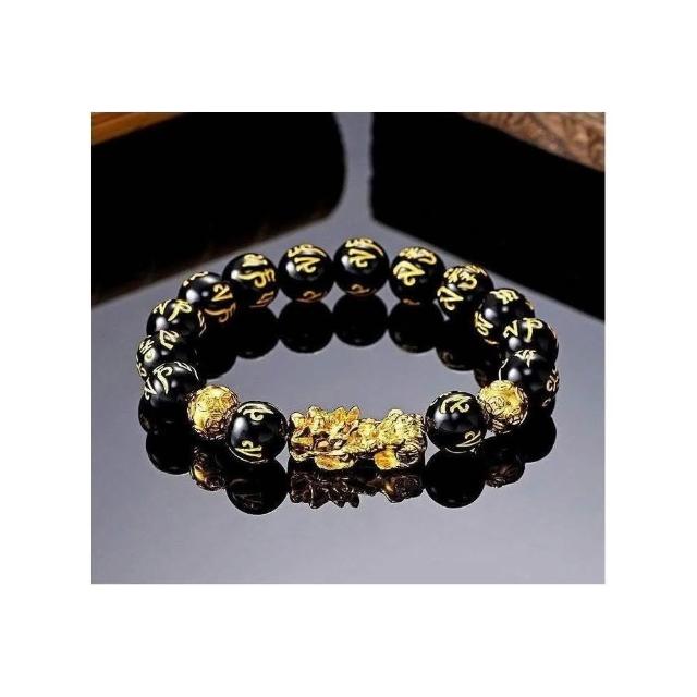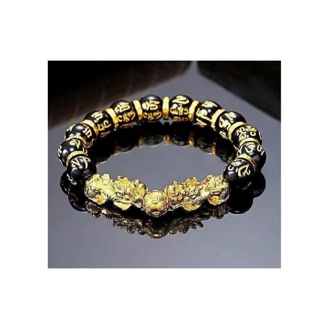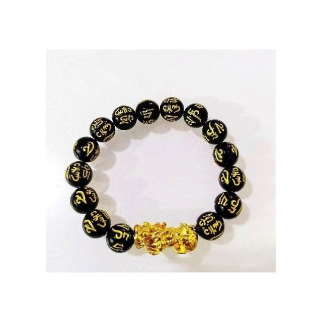 越南沙金雙貔貅手鏈 男女對鏈 仿3D硬金 黑曜石佛珠念珠 六字真言 招財貔貅手串 台灣出貨 附發票
