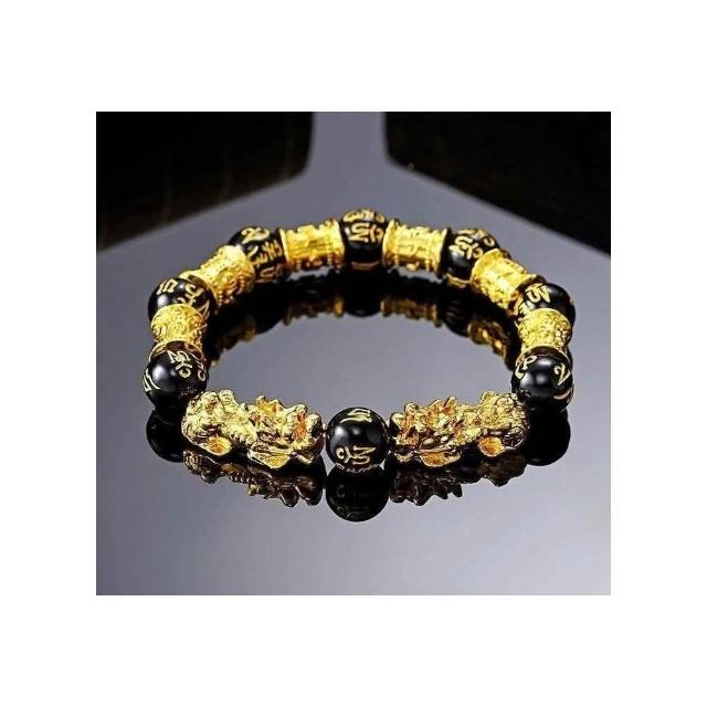 越南沙金雙貔貅手鏈 男女對鏈 仿3D硬金 黑曜石佛珠念珠 六字真言 招財貔貅手串 台灣出貨 附發票