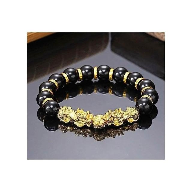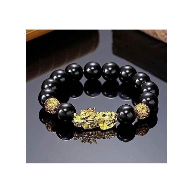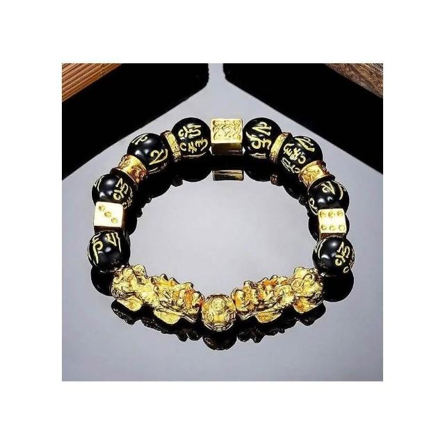 越南沙金雙貔貅手鏈 男女對鏈 仿3D硬金 黑曜石佛珠念珠 六字真言 招財貔貅手串 台灣出貨 附發票