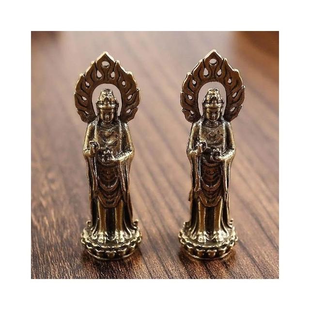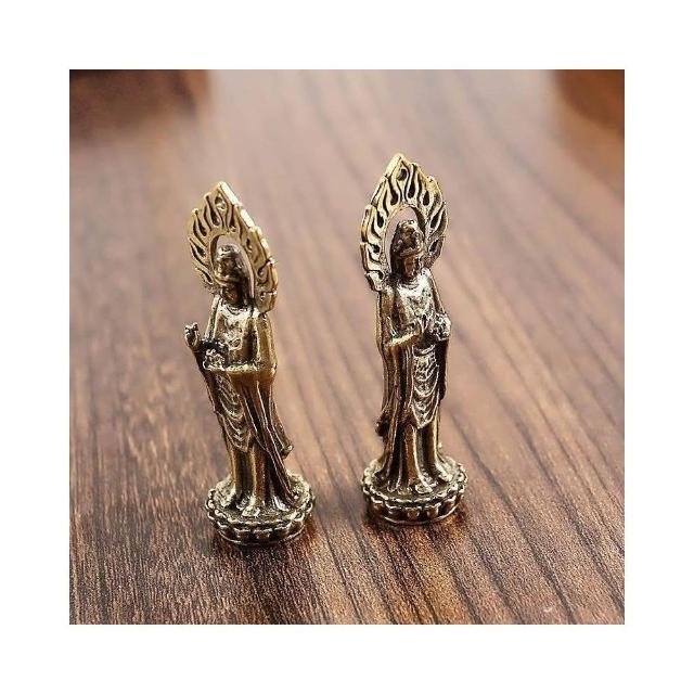 佛光觀音菩薩 供奉純銅擺件 家居禮佛 黃銅迷你小佛像 中式復古工藝品 神像佛像擺件 台灣出貨 附發票