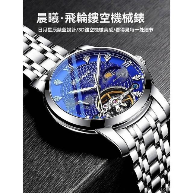 男士手錶 鏤空陀飛輪 日月星辰 防水鋼帶手錶 全自動機械錶 8870