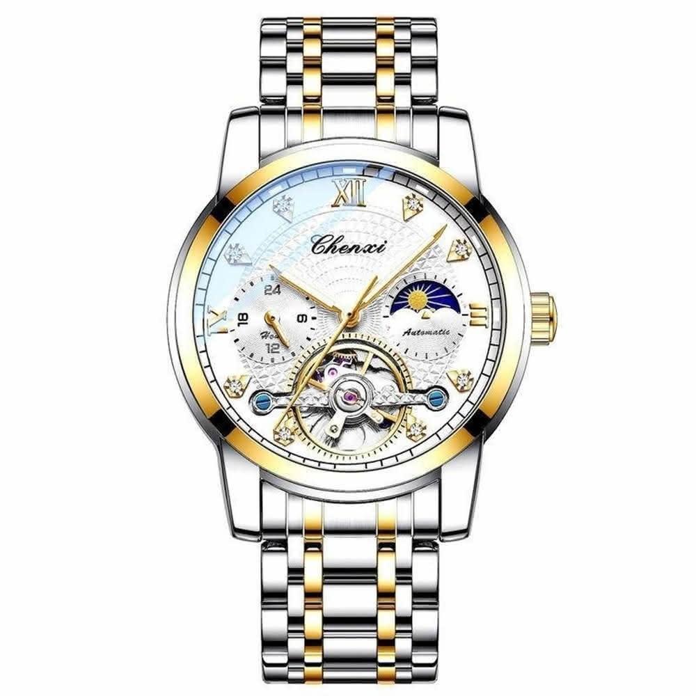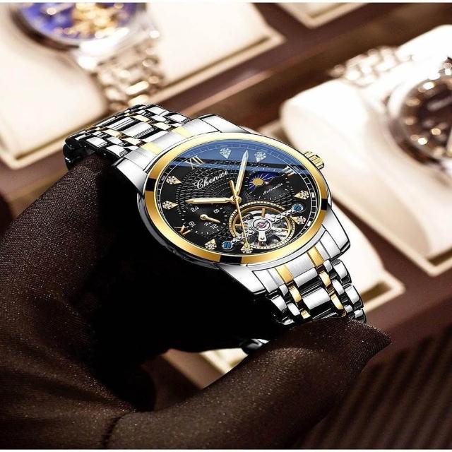 男士手錶 鏤空陀飛輪 日月星辰 防水鋼帶手錶 全自動機械錶 8870