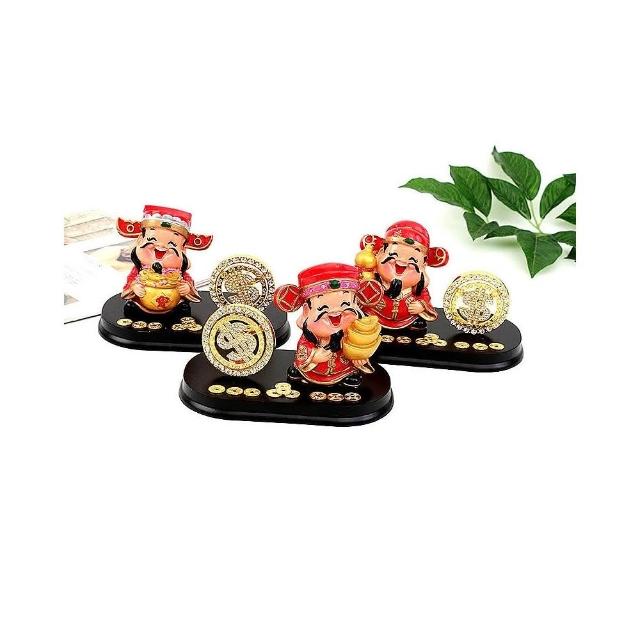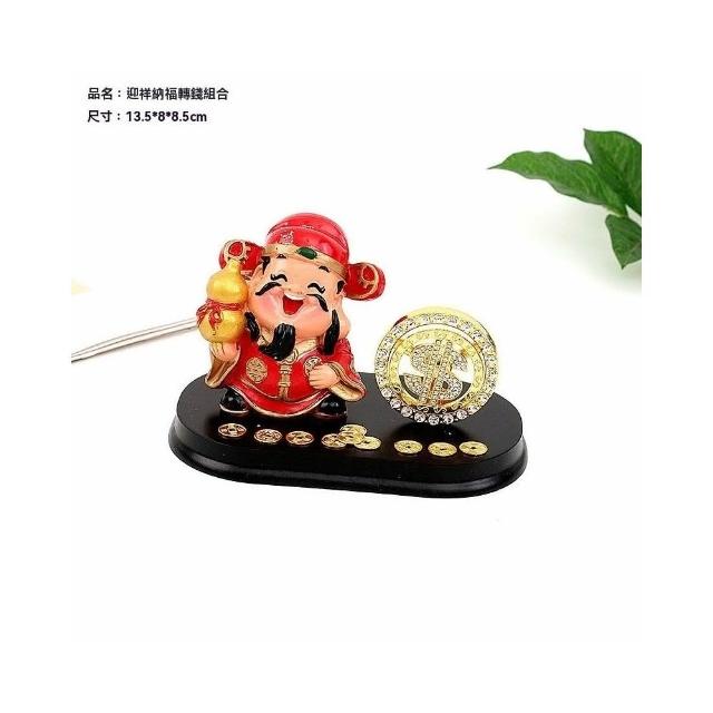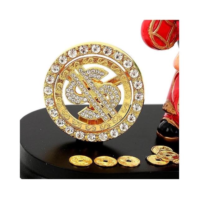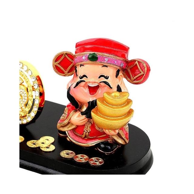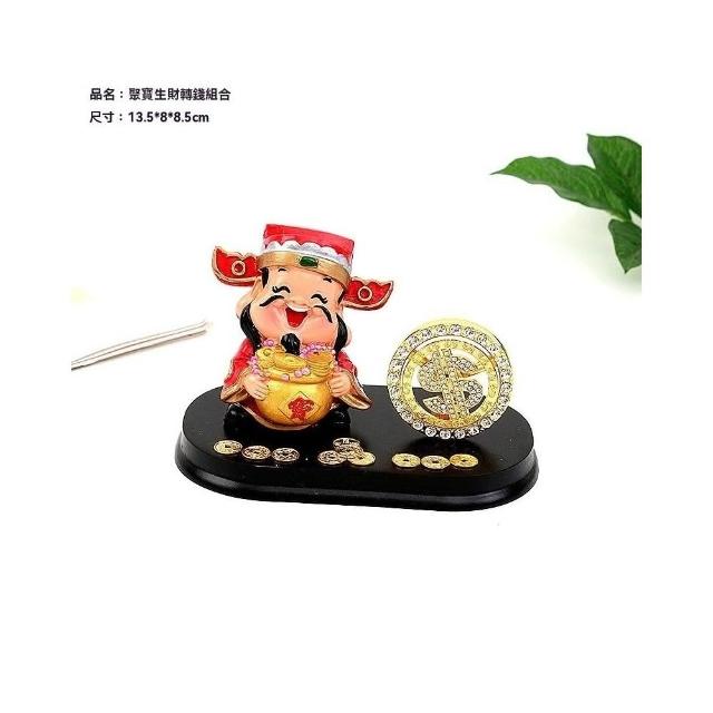 創意q版財神爺 汽車內飾擺件 招財公仔 樹脂工藝品 鑲鑽金幣轉錢 財神車飾 招財擺飾
