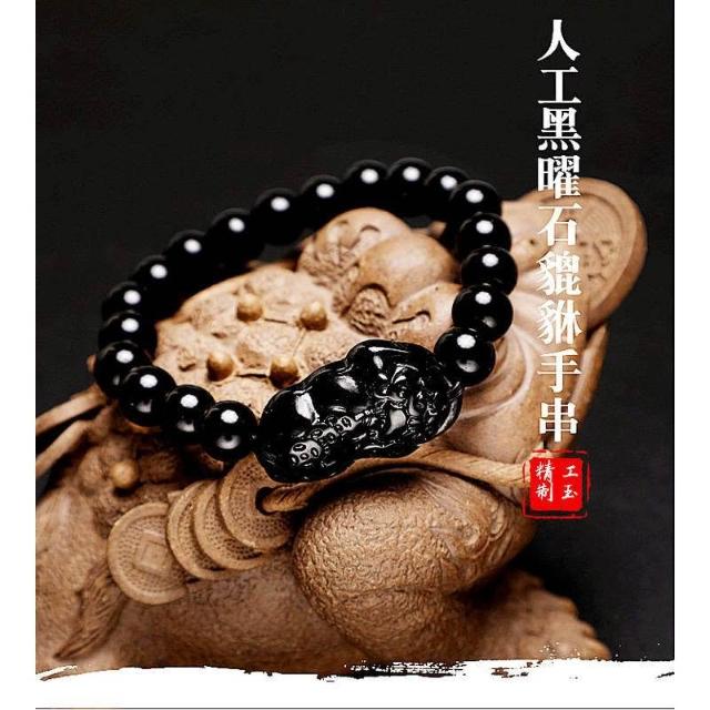 黑曜石貔貅手鍊 情侶款 佛珠手串 招財避邪轉運手環 小人防護 開運飾品 創意禮物 台灣出貨