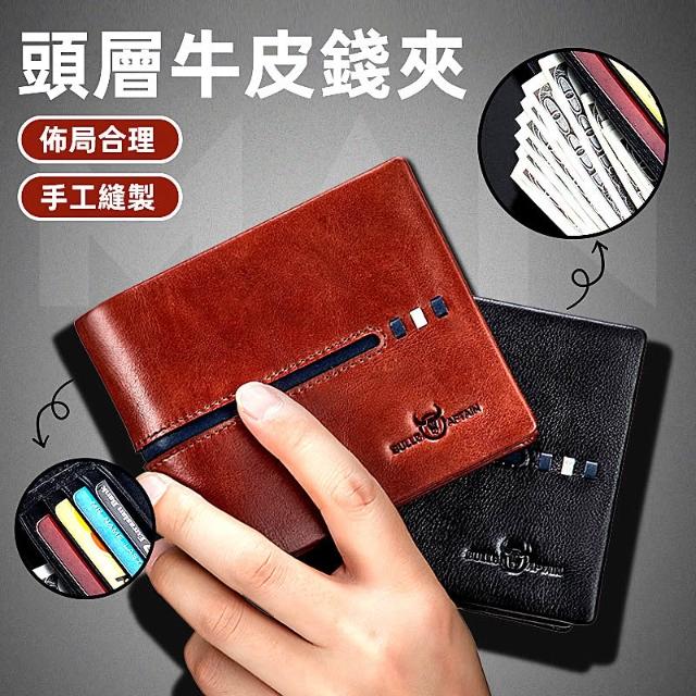 男士短夾 真皮錢包 多卡位錢夾 防掃描屏蔽 RFID防盜卡夾 雙層收納 牛皮皮夾 台灣出貨 0200