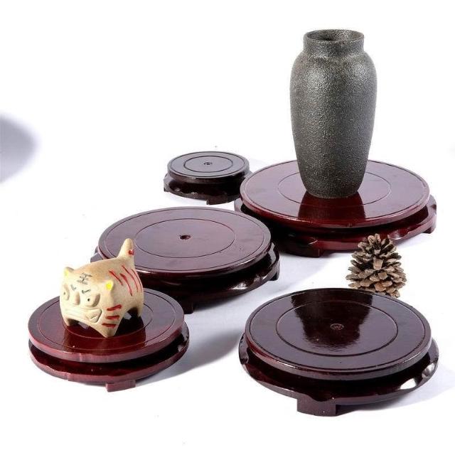 仿實木木質底座 圓形花瓶底座 魚缸工藝品擺件托架 木雕展示架 擺件底座 台灣出貨