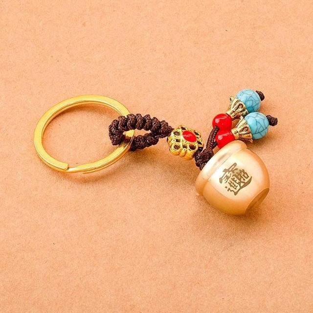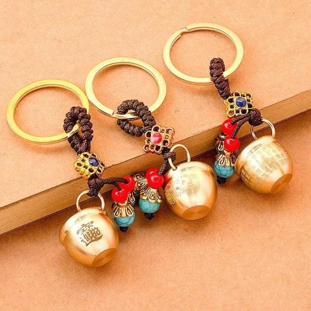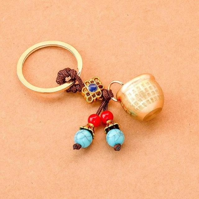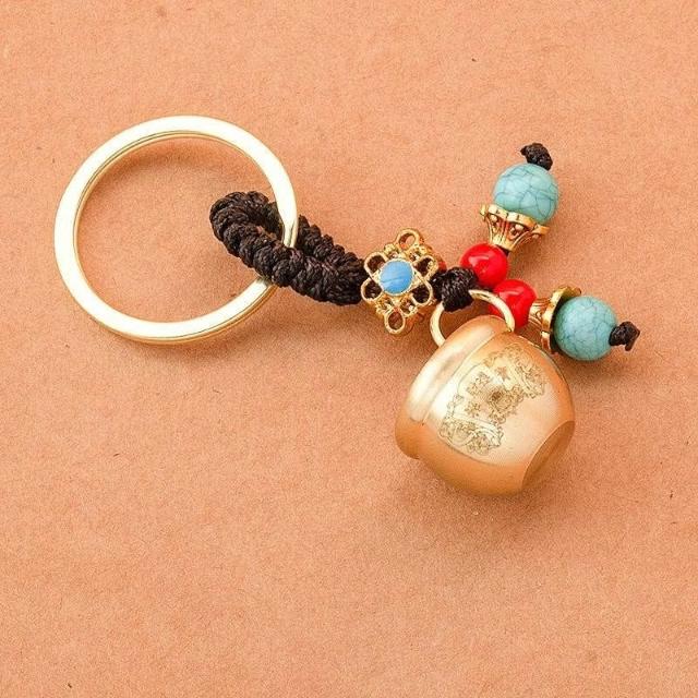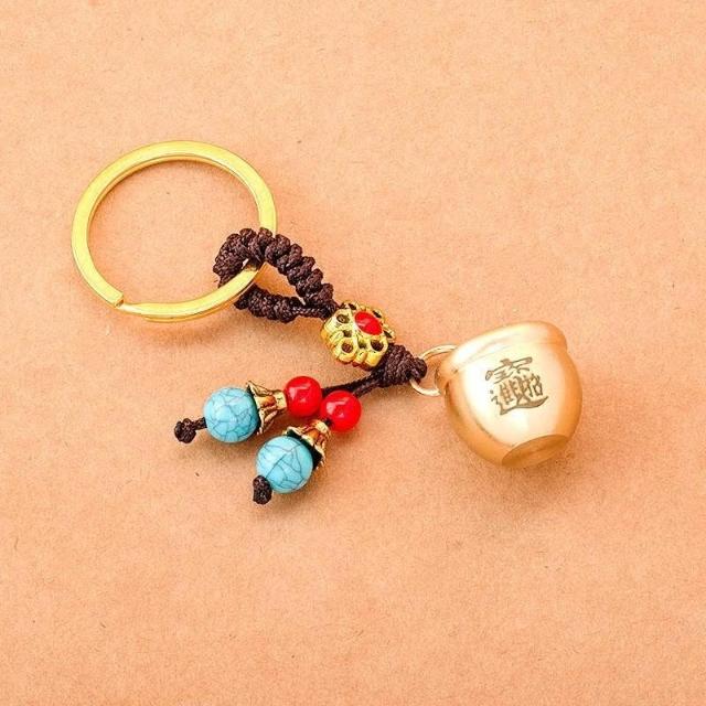 復古黃銅迷你招財缸 掛件鑰匙圈 包包吊飾 小百福聚財缸 工藝風水吊飾 招財隨身配件 台灣出貨