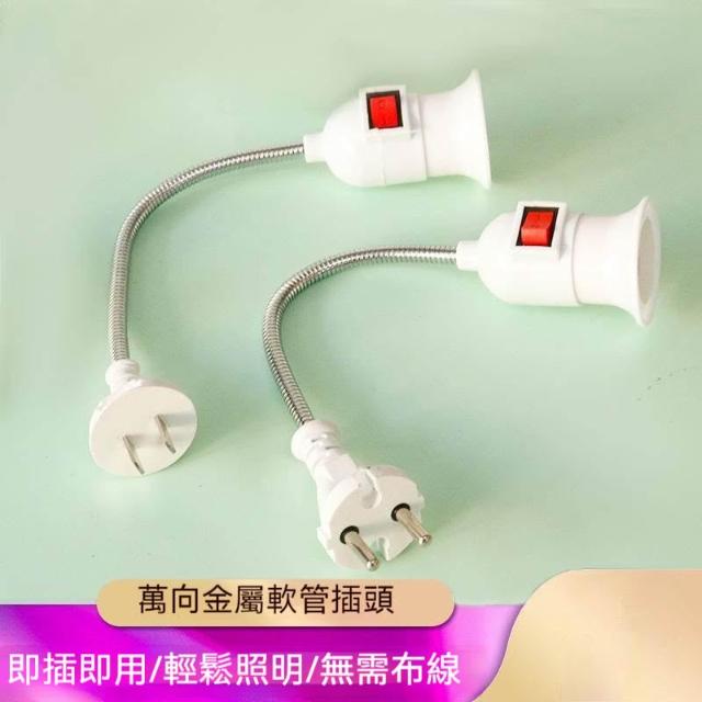 萬向軟管燈座 E27螺紋插頭 帶開關軟管燈頭 電燈座 照明配件 金屬燈管 插即用 台灣出貨