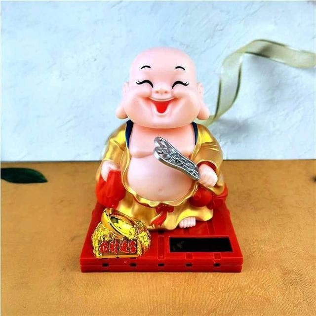 太陽能小和尚擺件 敲木魚 小和尚 彌勒佛 車載車飾 小沙彌擺件 汽車裝飾 台灣出貨