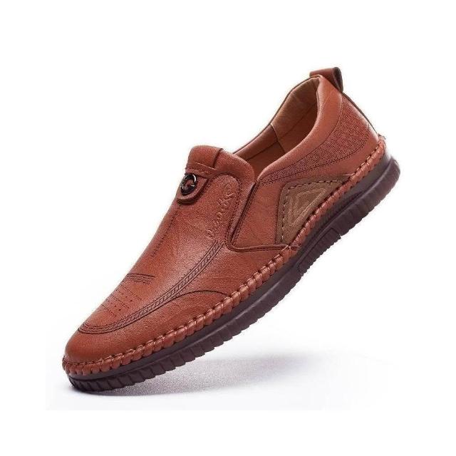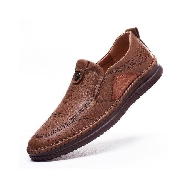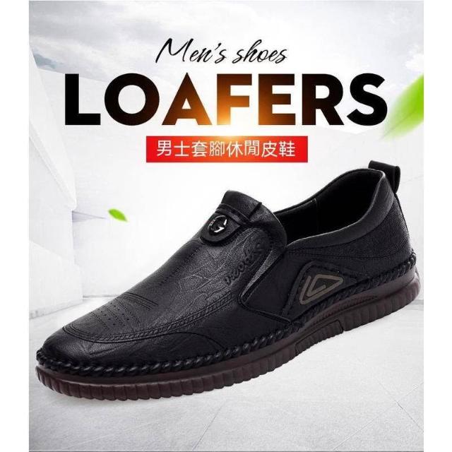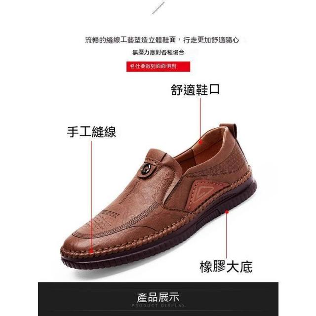 男士日常休閒皮鞋 軟底套腳鞋 手工縫線舒適鞋 防滑大尺碼鞋 透氣耐磨輕便鞋 台灣出貨 7038