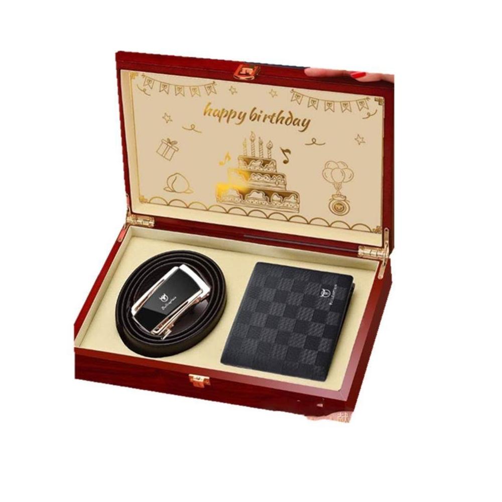 真皮錢包皮帶 棋盤錢包皮帶 皮夾短夾錢夾 送禮套裝禮盒 新年生日結婚父親節禮物 台灣出貨