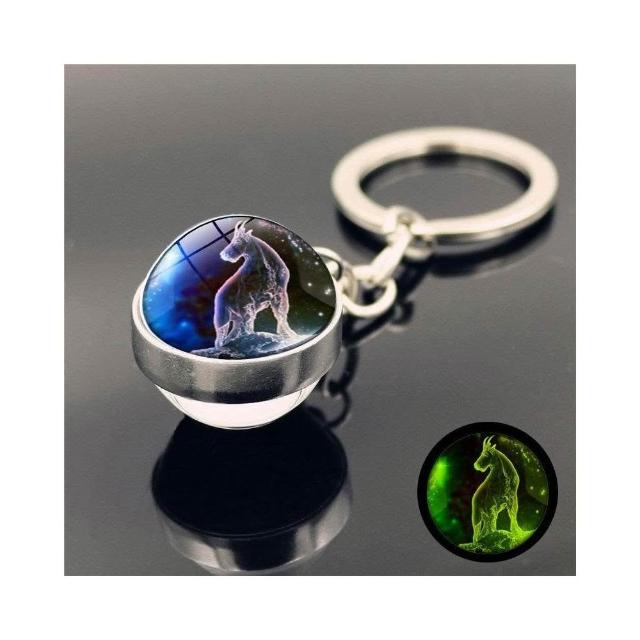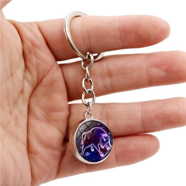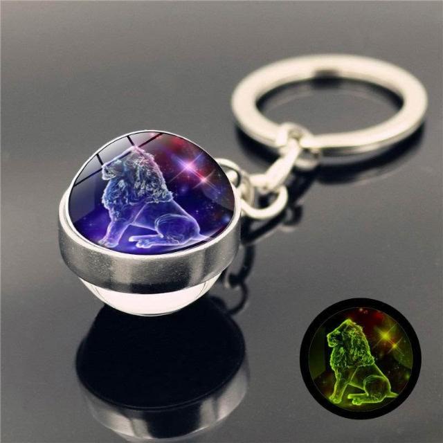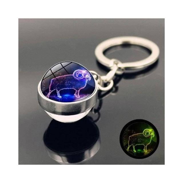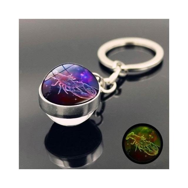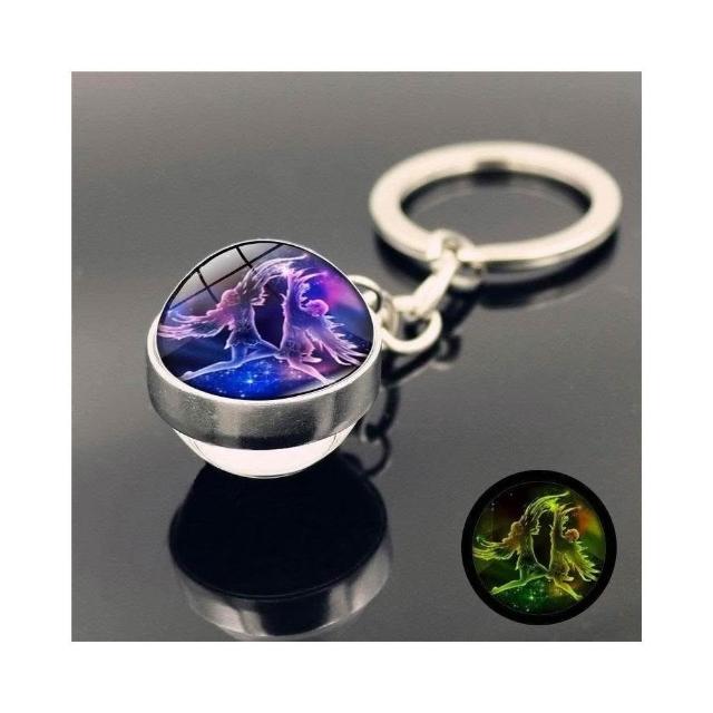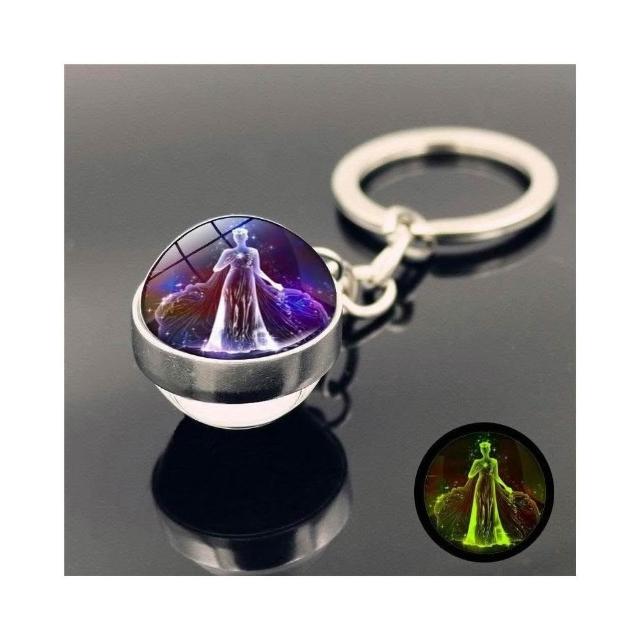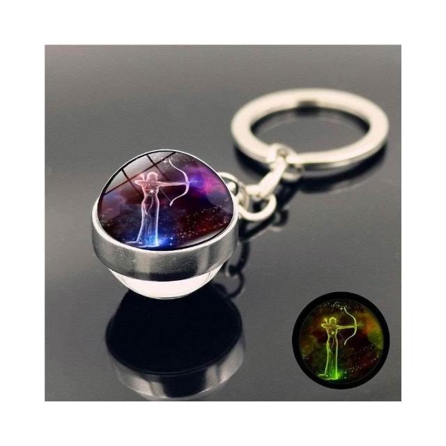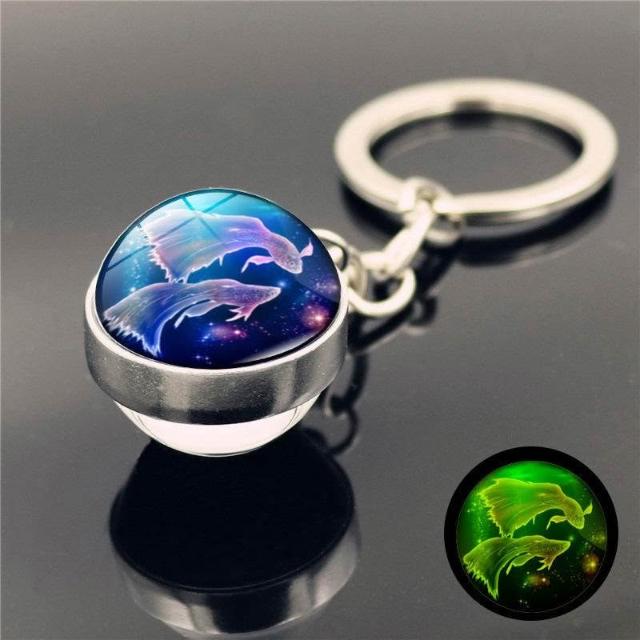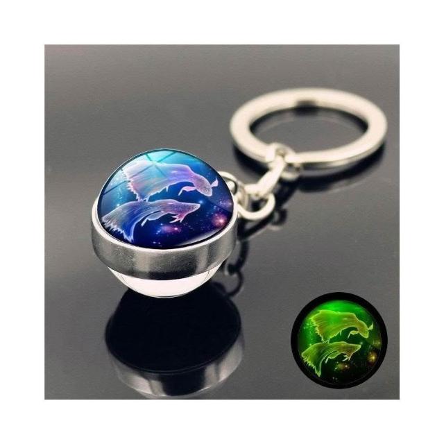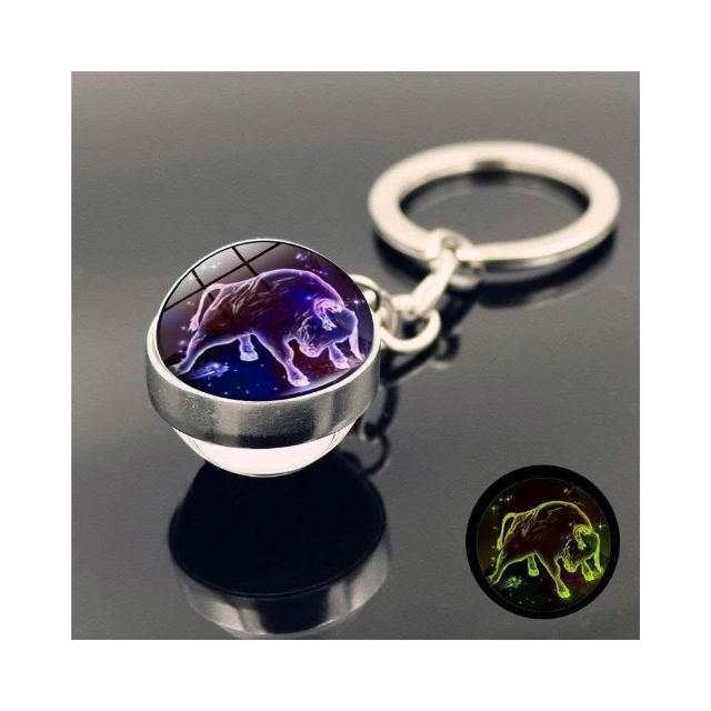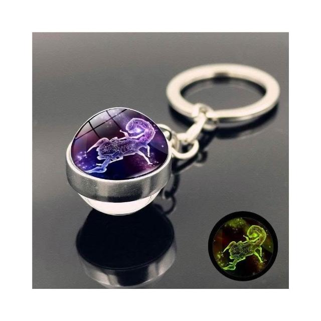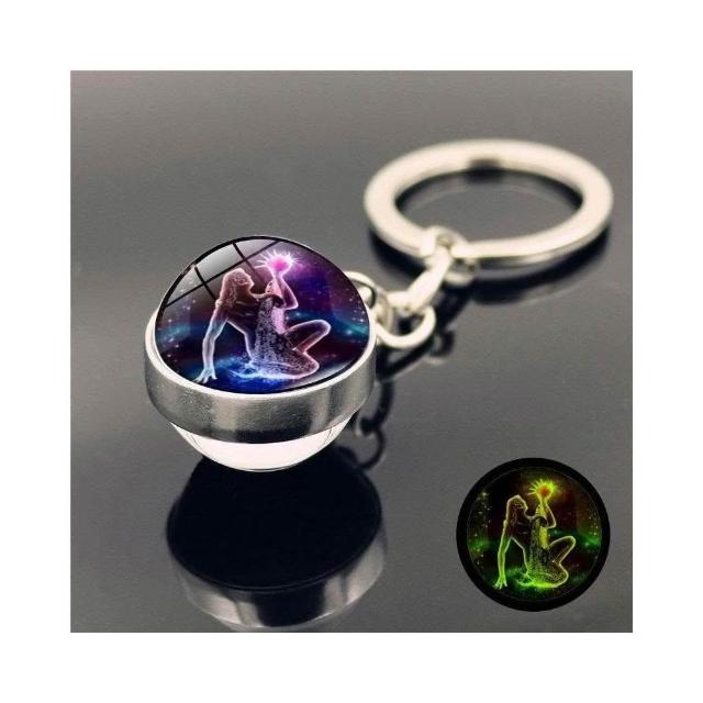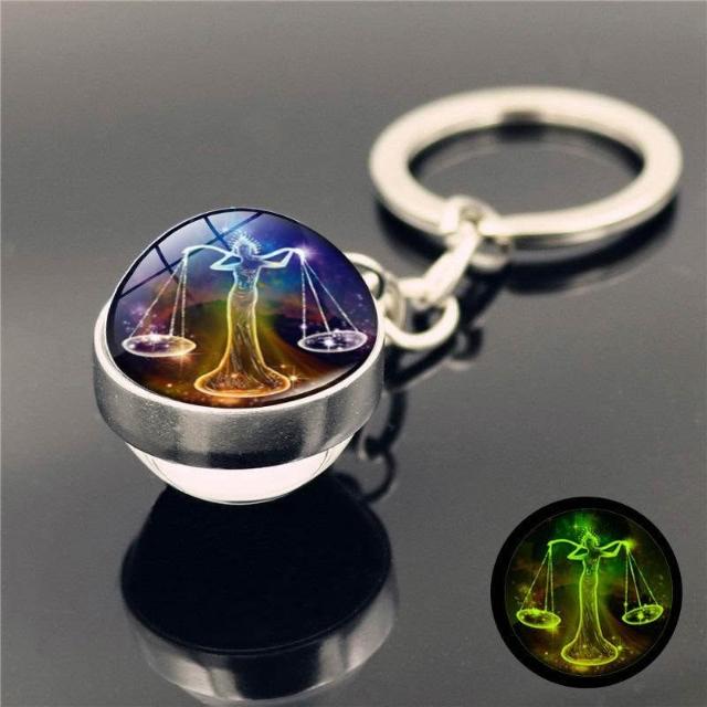夜光十二星座鑰匙扣 雙面水晶球鑰匙圈 金屬鑰匙圈吊飾 生日禮物 掛飾 台灣出貨