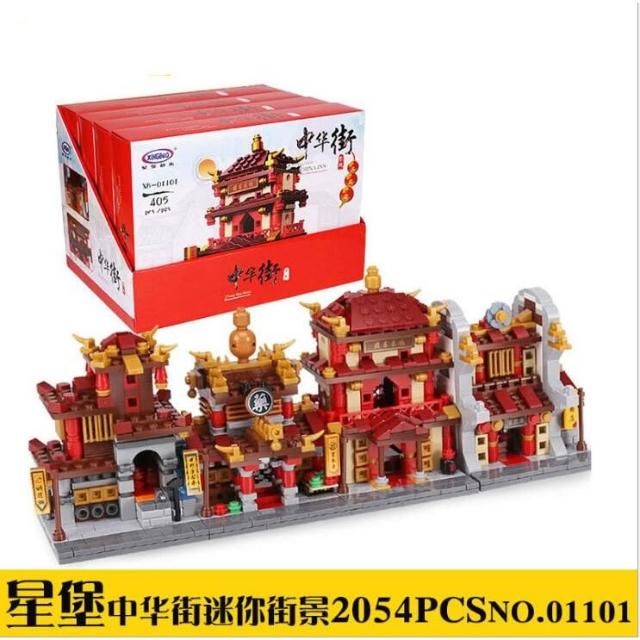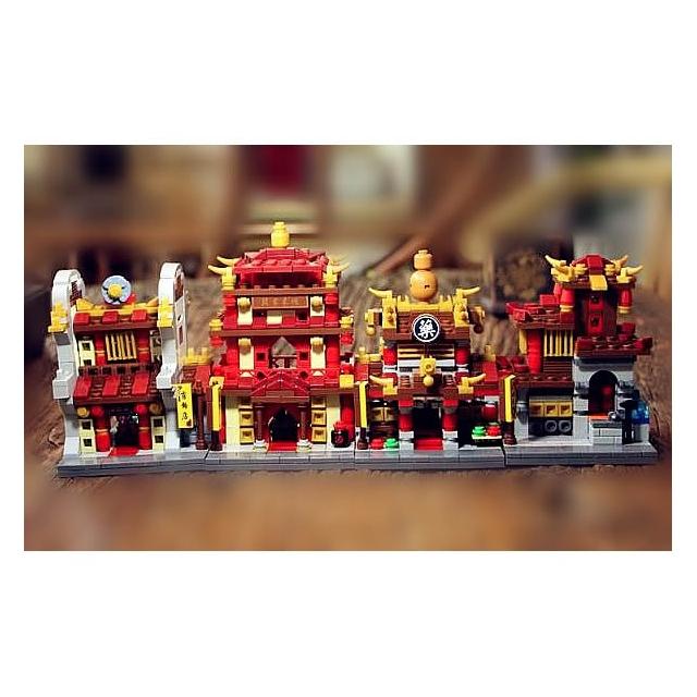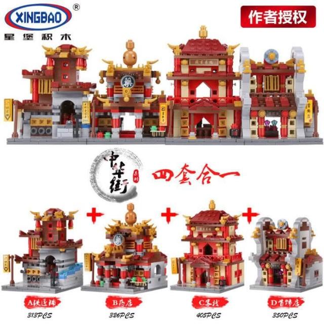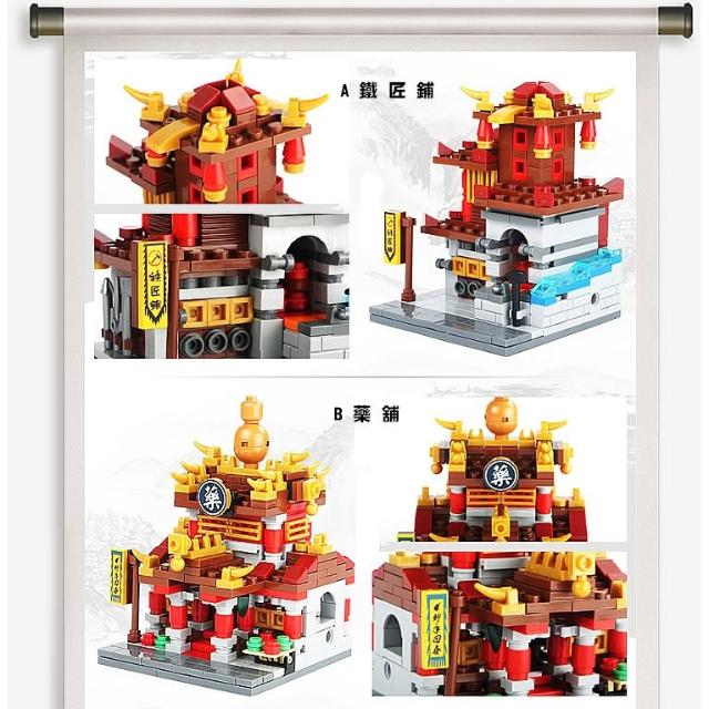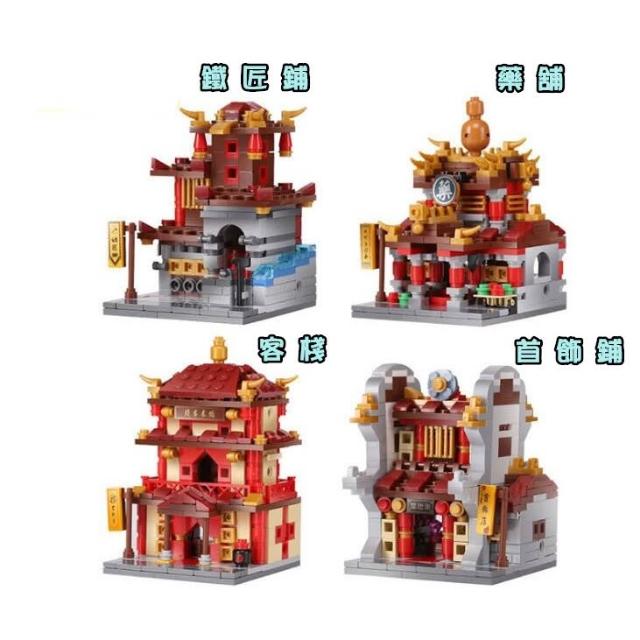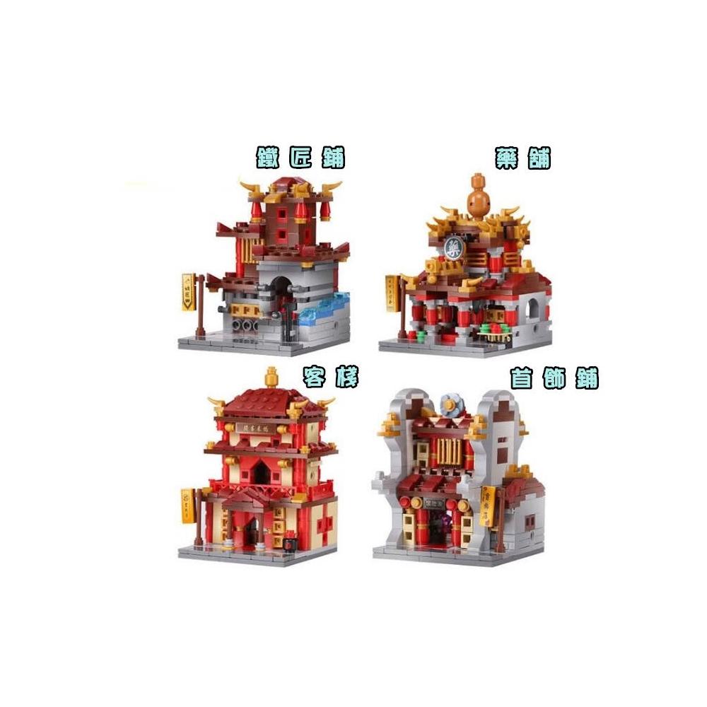 華街 迷你街景 四合一 古代街景 積木 藥鋪 街景 兒童玩具星堡XB-01101 台灣出貨【AB89.1