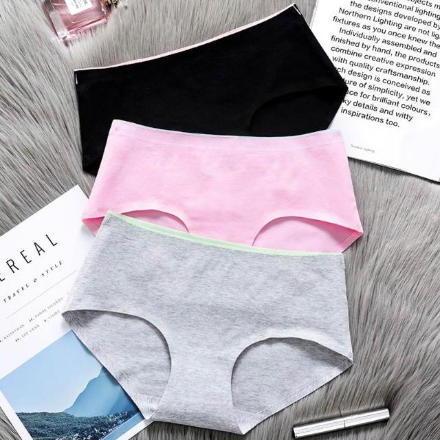 純棉拼色中腰性感 女士內褲 X-901 女三角底褲 日系全棉無痕內褲女 台灣出貨