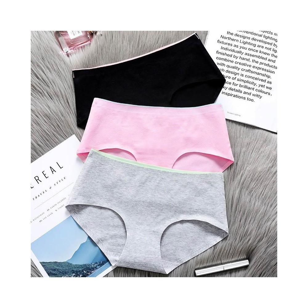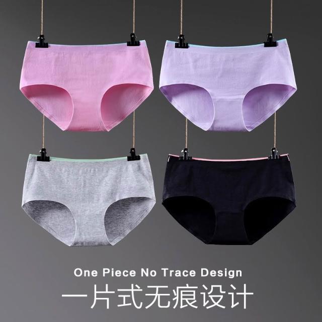 純棉拼色中腰性感 女士內褲 X-901 女三角底褲 日系全棉無痕內褲女 台灣出貨