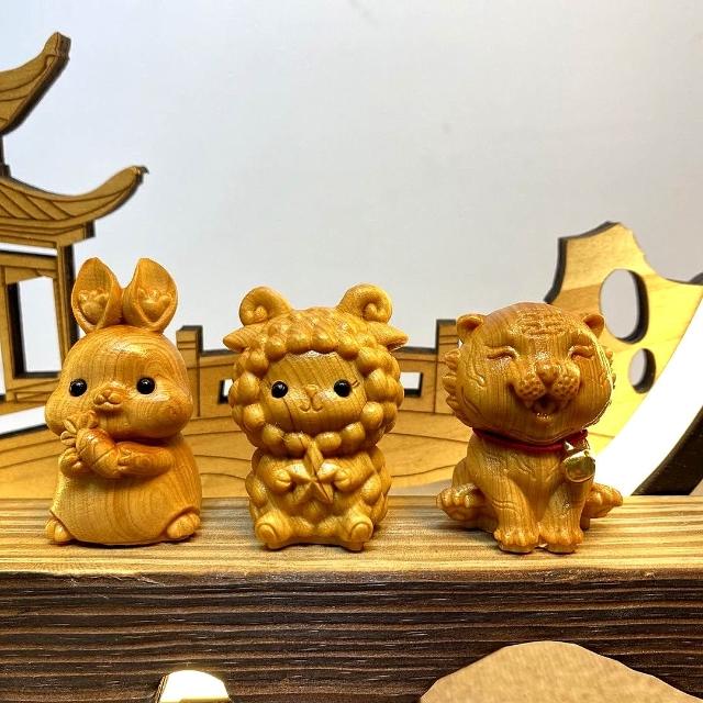 十二生肖擺件 崖柏木雕擺飾 手工雕刻隨身掛飾 文玩收藏擺件 實木質感雕件 禪意風格 台灣出貨