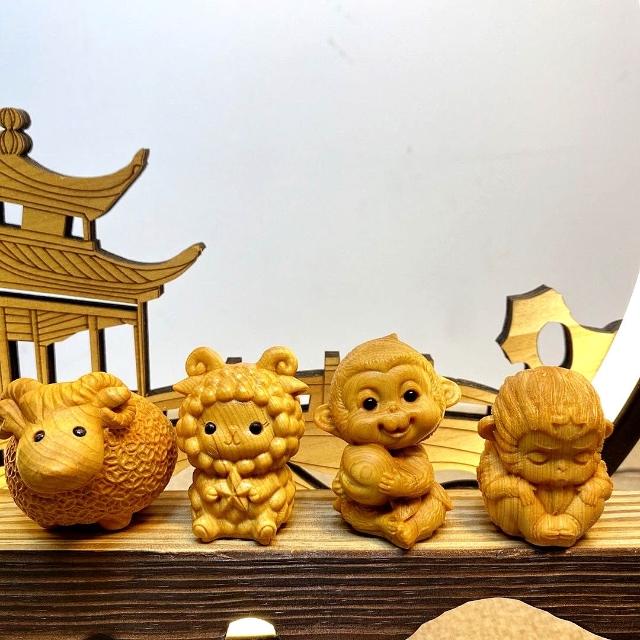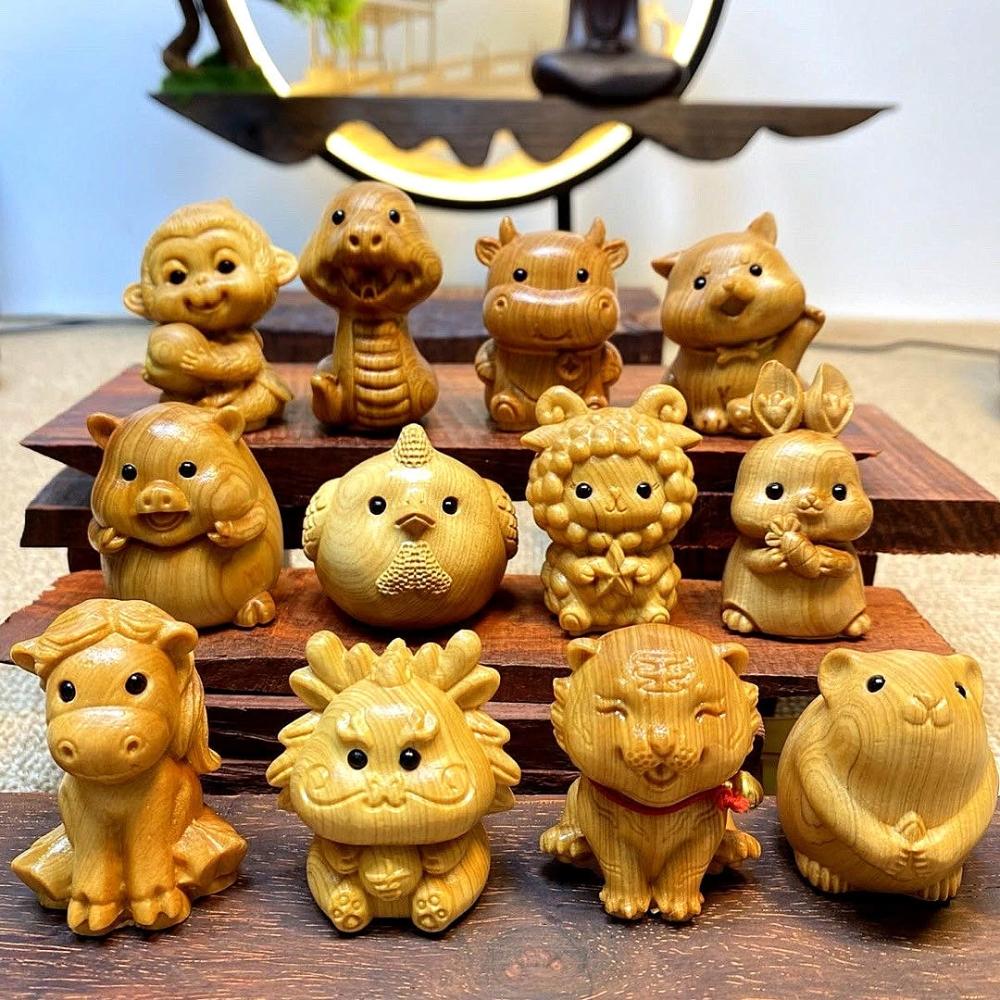 十二生肖擺件 崖柏木雕擺飾 手工雕刻隨身掛飾 文玩收藏擺件 實木質感雕件 禪意風格 台灣出貨