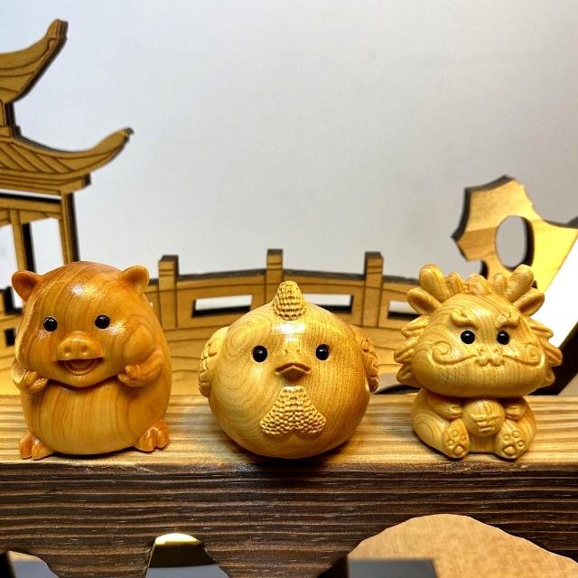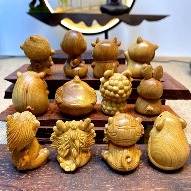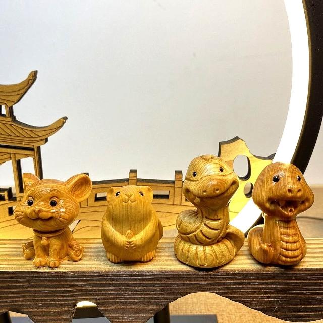 十二生肖擺件 崖柏木雕擺飾 手工雕刻隨身掛飾 文玩收藏擺件 實木質感雕件 禪意風格 台灣出貨