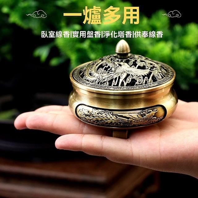 合金銅香爐 家用室內盤香爐 沉香檀香薰香爐 香篆爐焚香器 三足雕花香爐 線香爐 佛堂供奉 茶室書房擺設