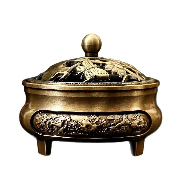 合金銅香爐 家用室內盤香爐 沉香檀香薰香爐 香篆爐焚香器 三足雕花香爐 線香爐 佛堂供奉 茶室書房擺設
