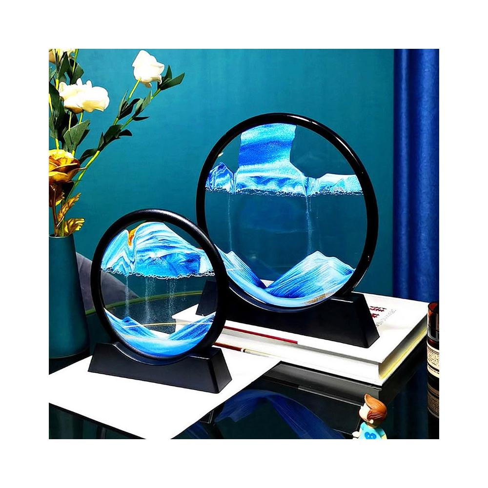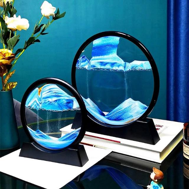 3D流沙畫 圓形玻璃工藝品 沙漏創意禮品 案頭擺件 靜態藝術禮品 沙畫裝飾品 流沙桌面擺飾 台灣出貨