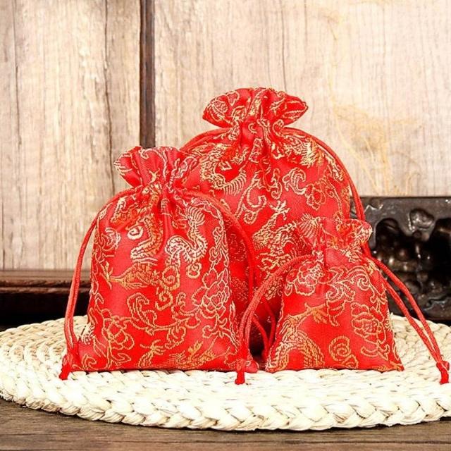 中國風龍紋收納錦袋 抽繩小布袋 刺繡珠寶袋 首飾袋 喜慶袋 禮品袋
