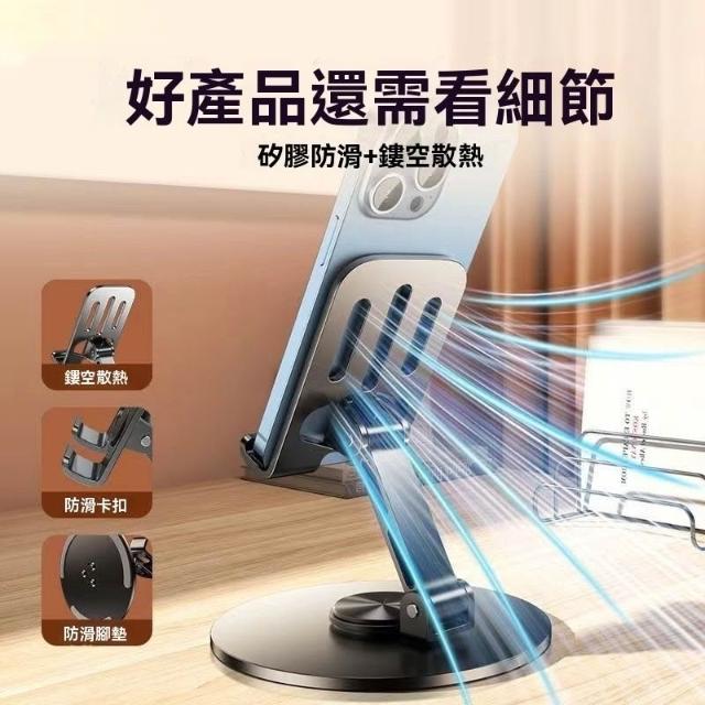 金屬手機支架 桌面直播手機架 360度旋轉折疊支架 穩固不晃手機架 平板手機通用支撐架